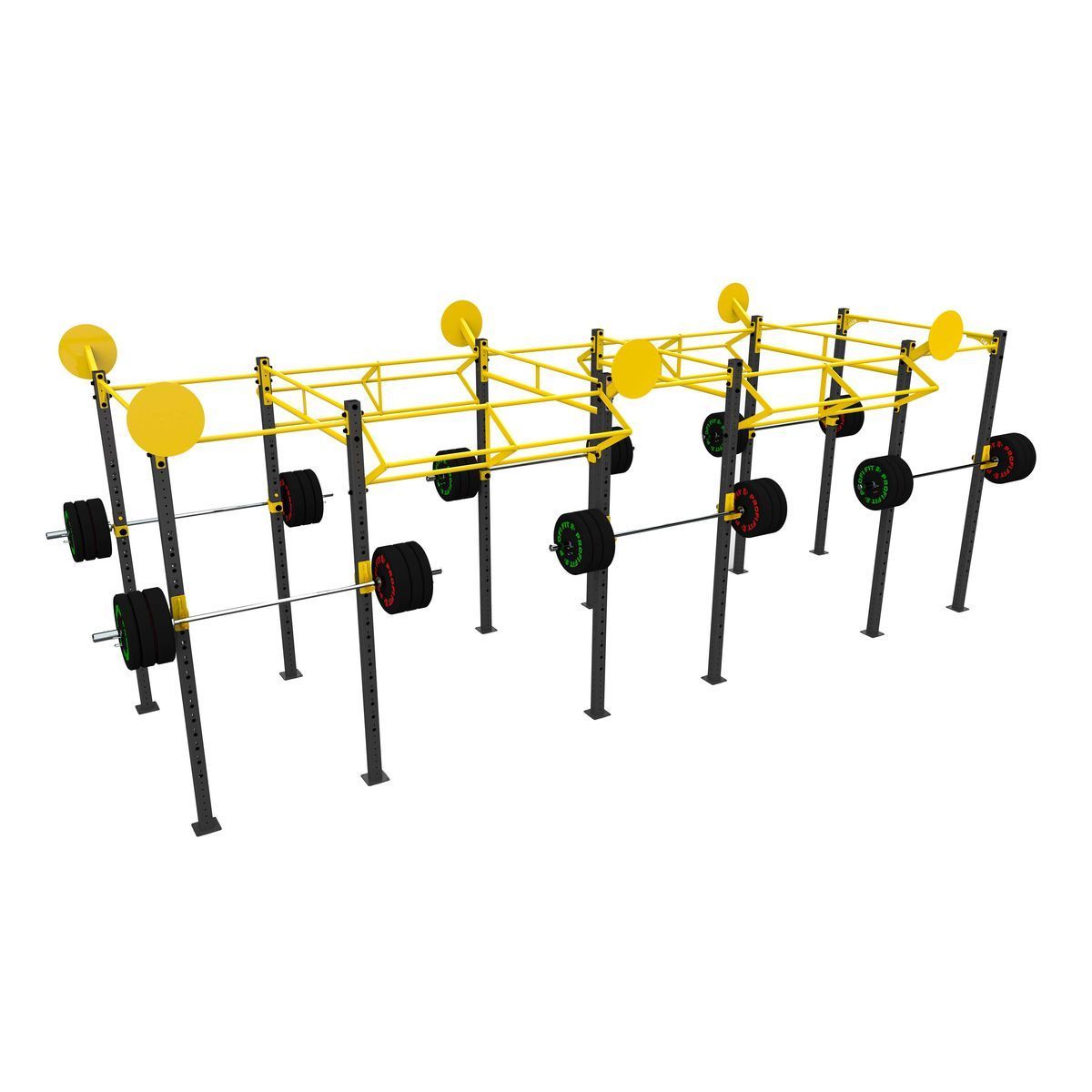 А0336 Функциональная рама 6900-1800.Функциональная рама для кроссфита – неотъемлемый атрибут любого crossfit-зала, универсальное решение необходимое для проведения комплексных тренировок и выполнения силовых упражнений.Основные элементы рамы выполнены из профильной трубы 80*80*3 мм,трубы d32 мм и листов металла 8 и 10 мм. Состав:Стойка перфорированная 80х80, ZSO-2680-12 шт Перекладина одинарная d32, ZSO-1100 -6 шт Перекладина треугольная d32/32/32, ZSO-1800 — 4 шт Перекладина двойная d32, ZSO-1800 — 4 шт Перекладина одинарная УСИЛЕННАЯ d32, ZSO-1800 — 2 шт Мишень для медбола, ZSO- 6 шт Крюки для штанги, ZSO, (пара) -6 шт