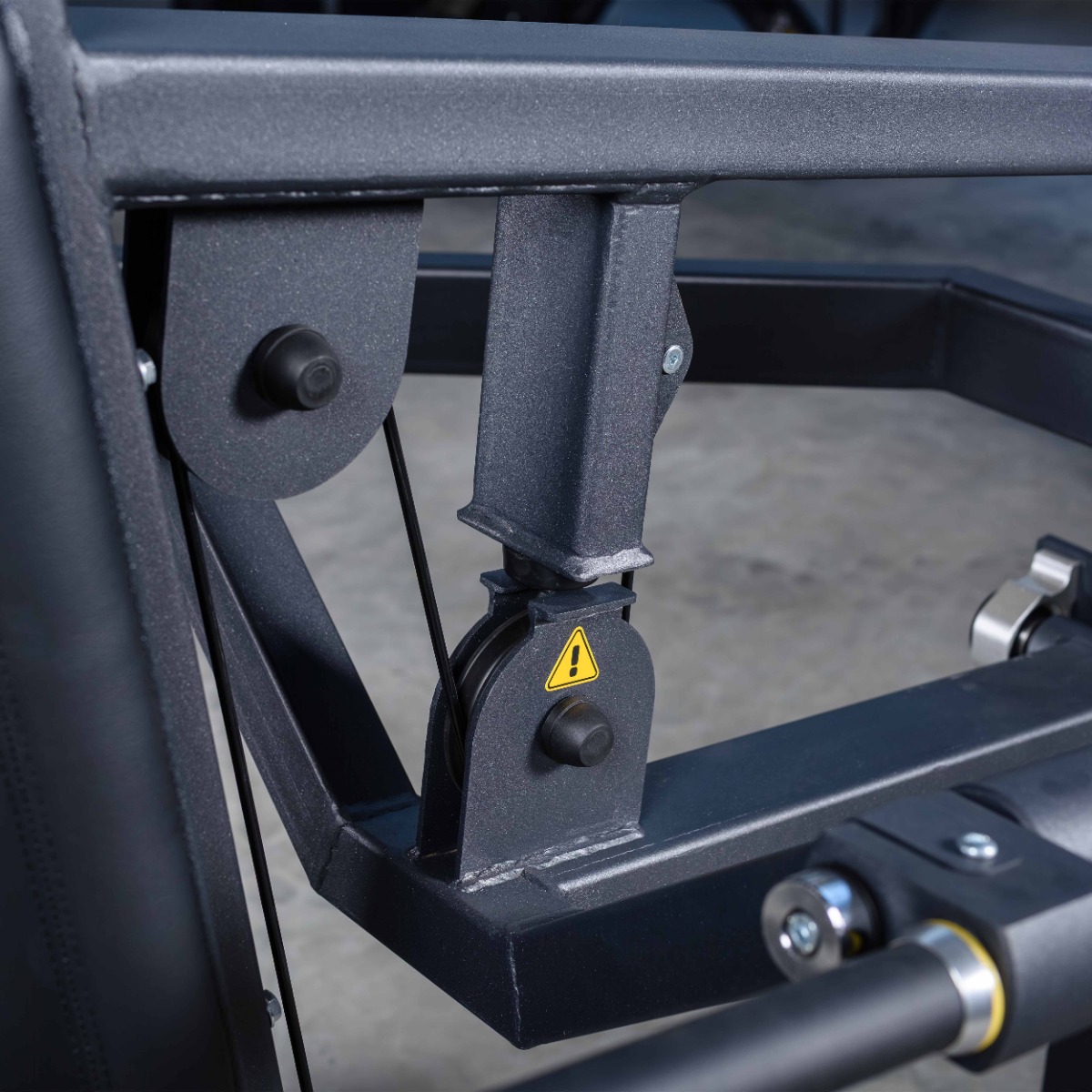 Система нагрузки – тросовая, с весовым стеком 100 кг. Весовой стек выполнен из стальных плит с порошковым покрытием.