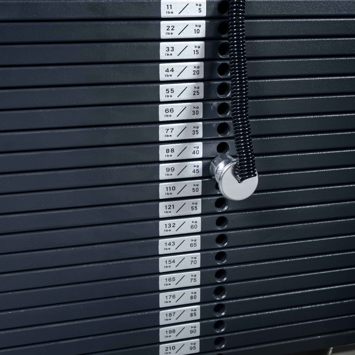 Система нагрузки – тросовая, с весовым стеком 100 кг. Весовой стек выполнен из стальных плит с порошковым покрытием.