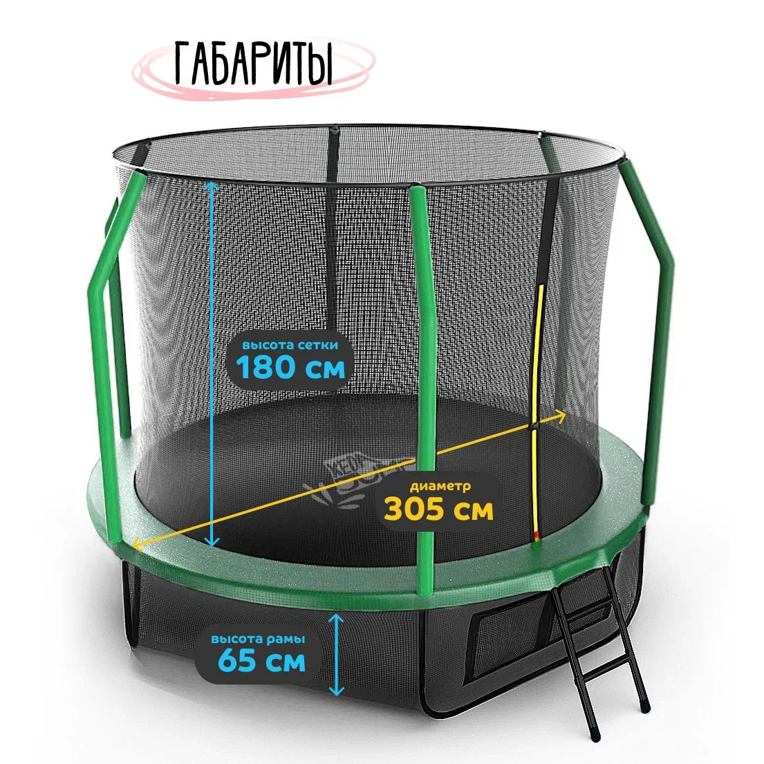 В комплекте идет лесенка для подъема на батут.