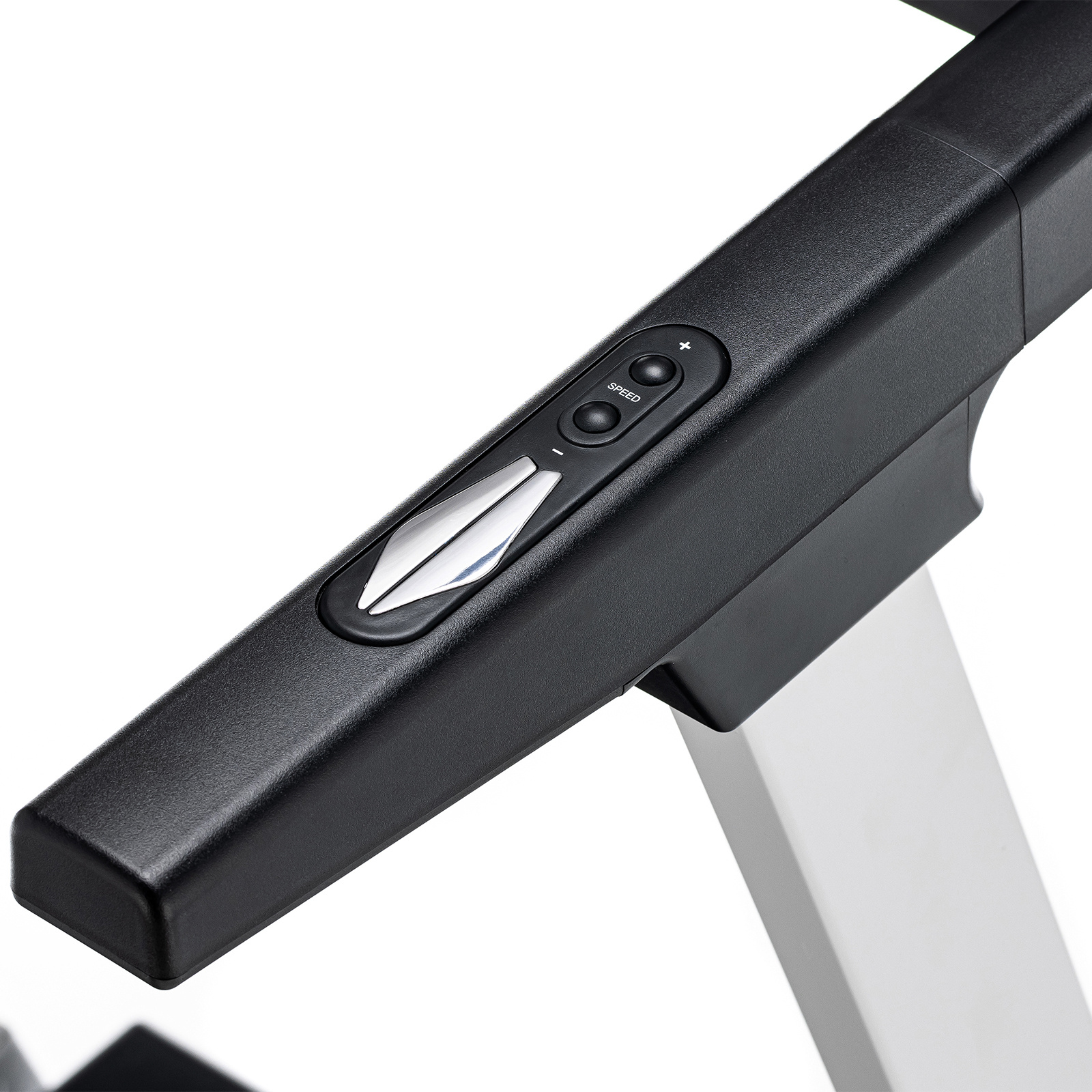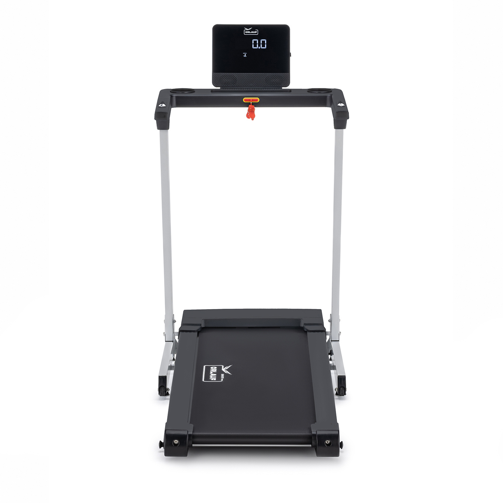 Все показатели тренировки отображаются на LED-дисплее, у которого можно менять угол наклона. Перед дисплеем предусмотрено место для смартфона. Под дисплеем располагается понятная сенсорная консоль с кнопками настройки тренировок, а также обычными и быстрыми кнопками изменения скорости. На поручнях расположены сенсорные датчики пульса и дублирующие кнопки скорости и запуска тренировки.