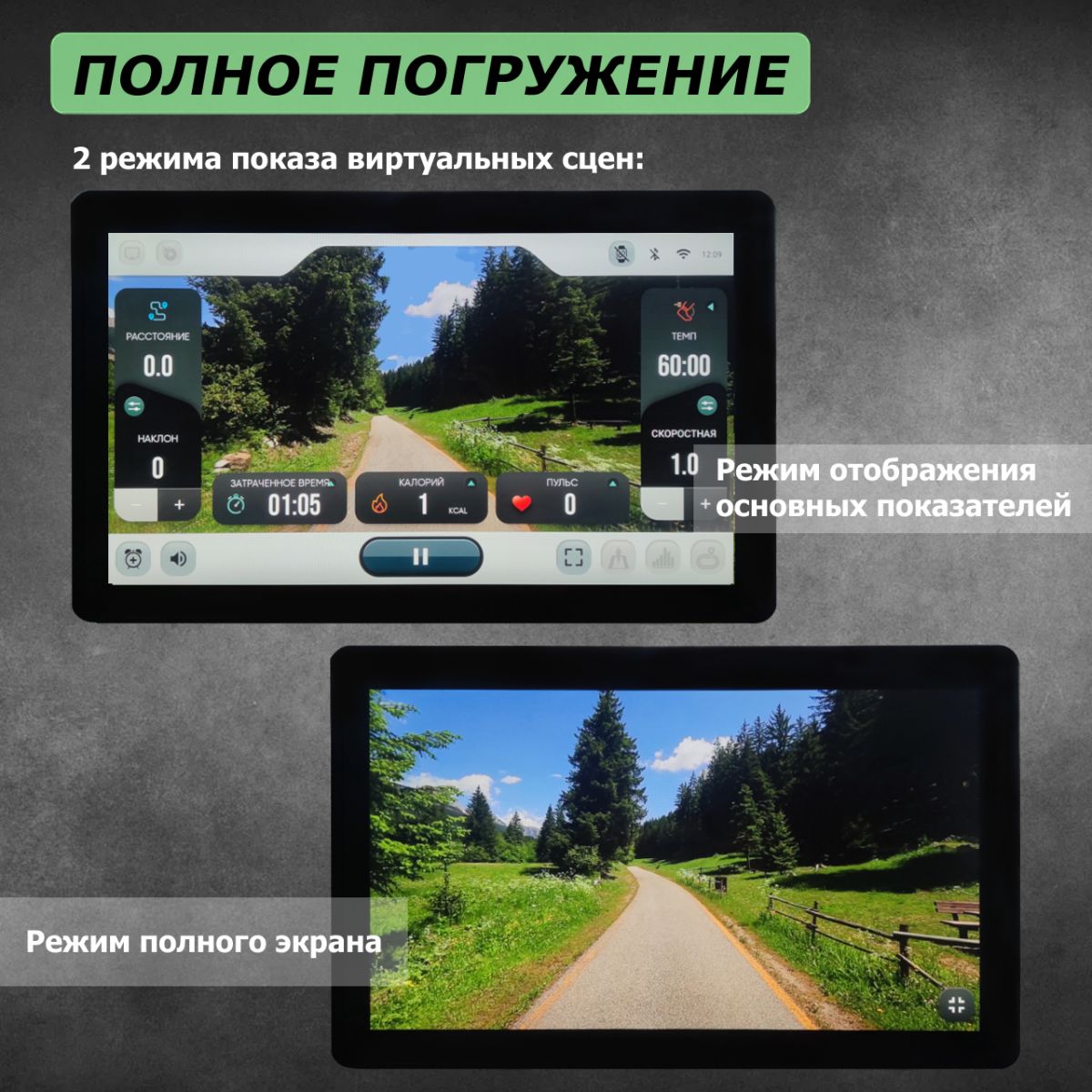 | Виртуальный режим тренировки | 4 предустановленные сцены |