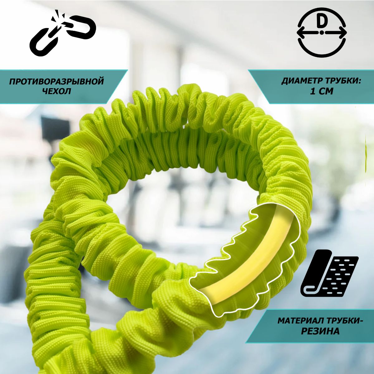 Эластичный трубчатый амортизатор FITEX PRO, предназначенный для тренировки практически всех основных групп мышц, как в условиях тренажерного зала, так и дома.