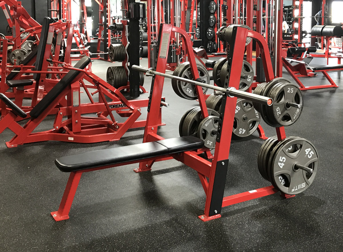 Олимпийская горизонтальная скамья FW-410 предназначена для выполнения упражнения, направленного на развитие мышц груди и трицепса.