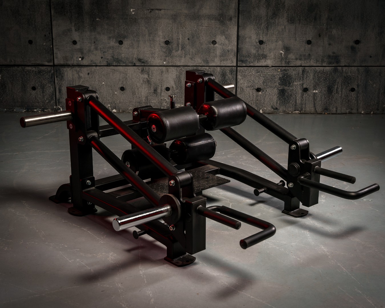 - Подушки-фиксаторы решают вопрос безопасности этого упражнения — бедра остаются параллельны друг другу, а колени направлены вперед. Мы позаботились о вопросе разной антропометрии пользователей: валики можно поднимать-опускать и выдвигать для настройки комфортного положения.