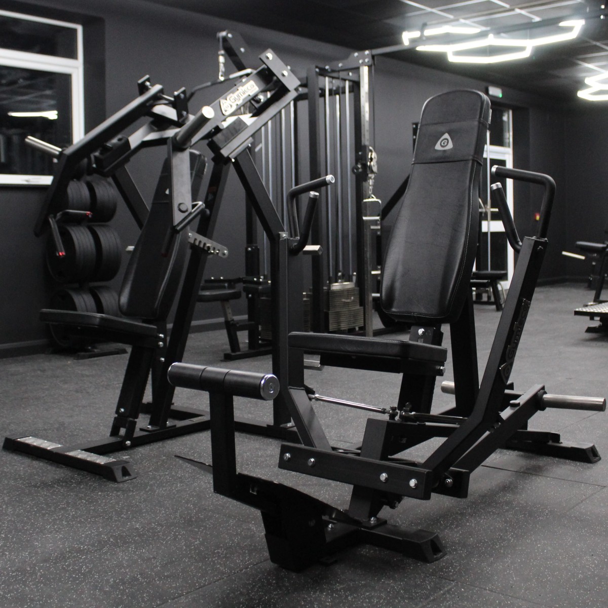 Горизонтальный грудной жим сидя на свободных весах Gymleco 021