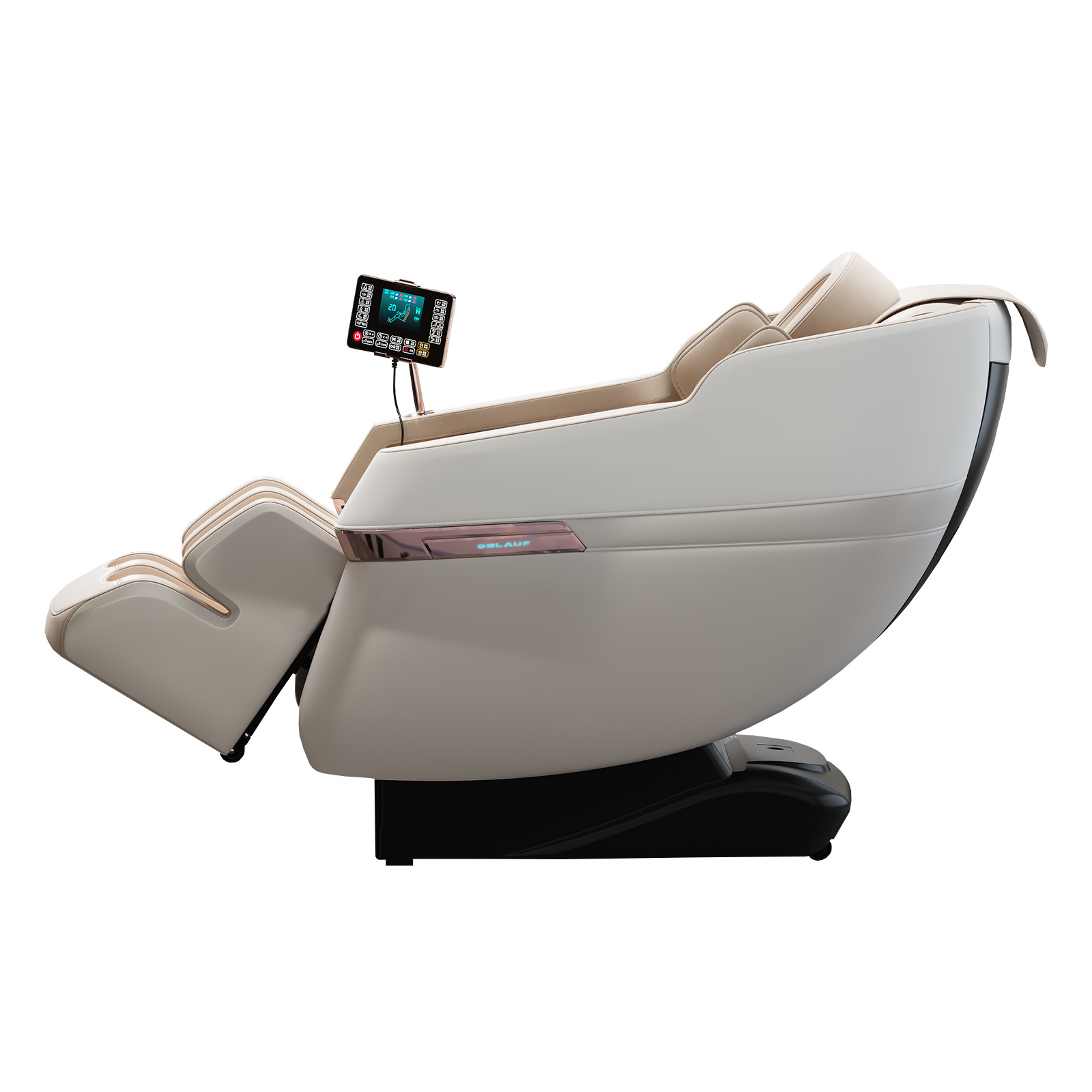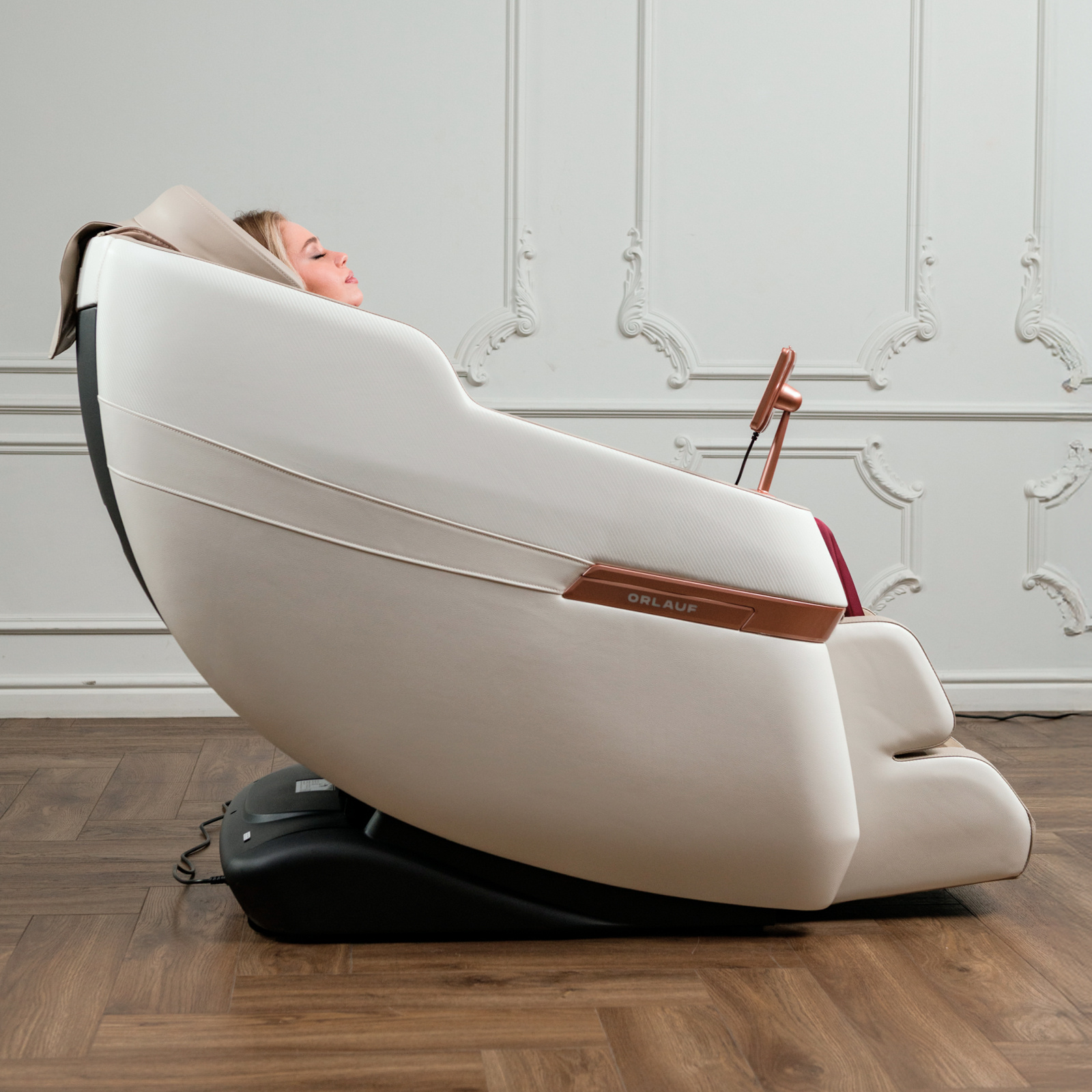 Orlauf Chase оснащено 22 роликами в спине, которые обеспечивают глубокий и точечный массаж, и 24 роликами для ног с акупунктурными точками. Такая конструкция помогает улучшить кровообращение и снять мышечное напряжение. Воздушно-компрессионный массаж осуществляется с помощью 20 подушек, которые воздействуют на разные участки тела: от шеи и плеч до ступней. Это способствует расслаблению и лимфодренажу.