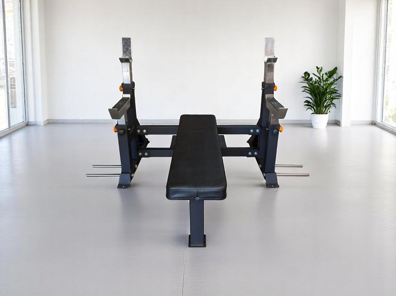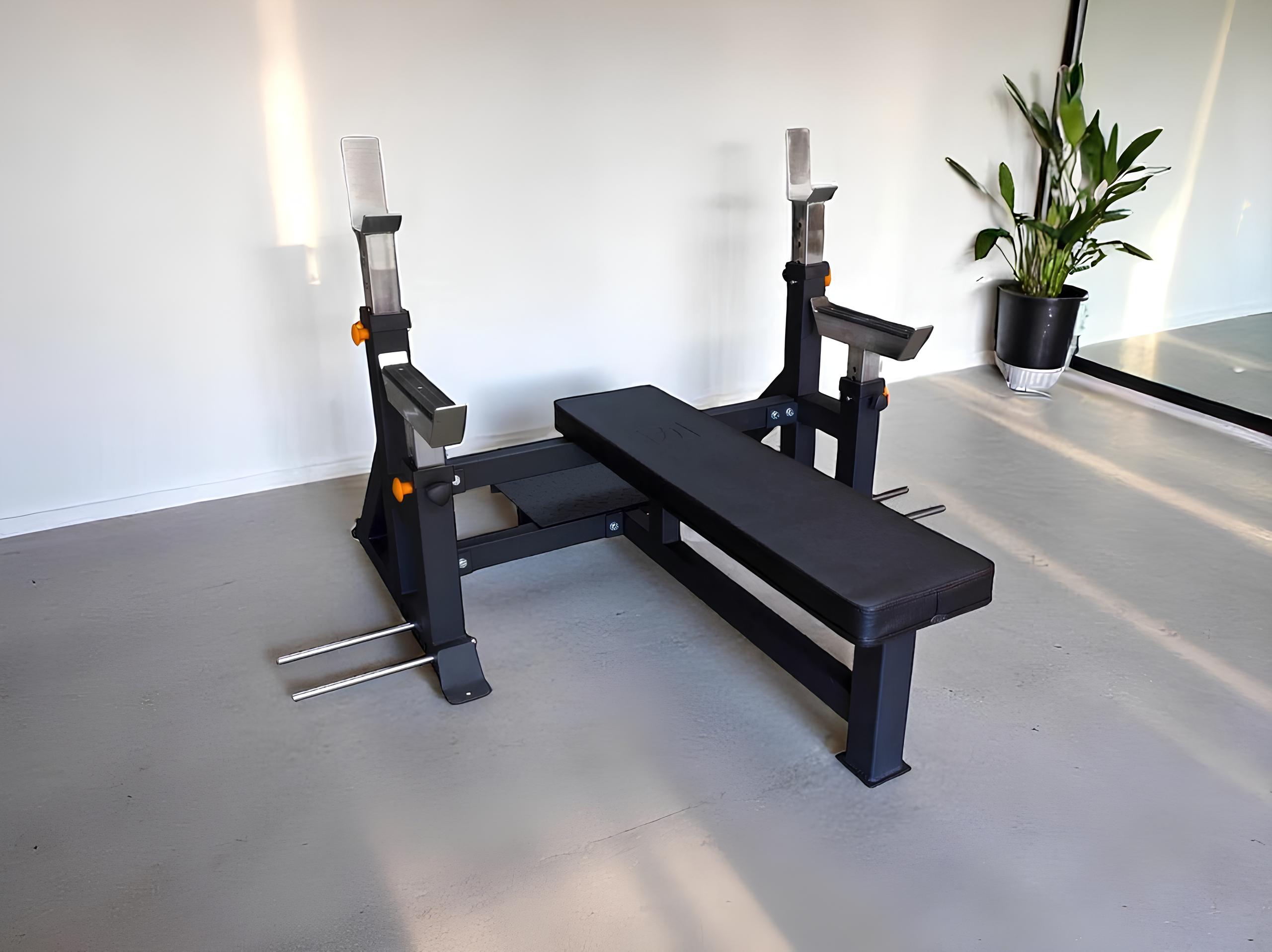Мощная, устойчивая олимпийская скамья для жима лежа.