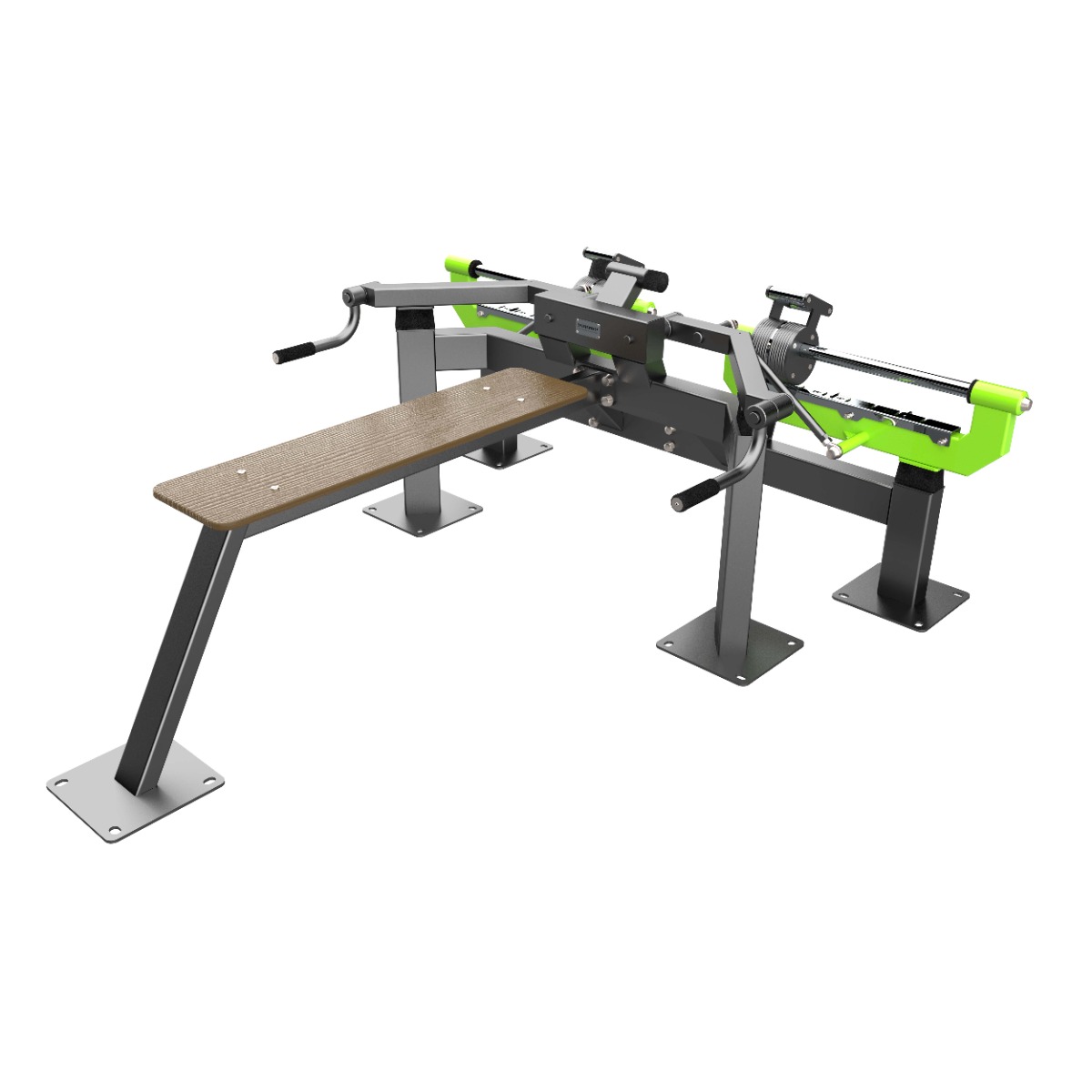 Механизм ограничения амплитуды движения с фиксированным углом хода предотвращает чрезмерное отклонение рабочих рычагов, исключая возможность травмирования пользователя и снижая ударные нагрузки на конструкцию. Дополнительно выполняет функцию антивандальной защиты, исключая контакт подвижных элементов между собой.