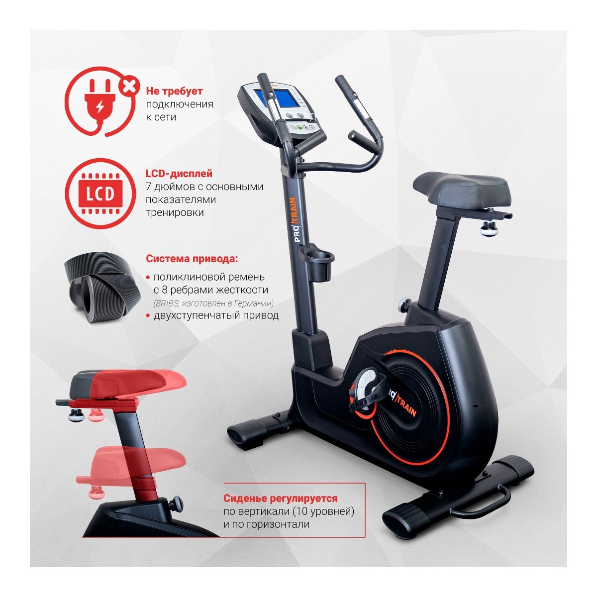 Велотренажер Protrain K8745W находится в топе моделей своего ценового сегмента. Тяжелый маховик массой 7 кг для плавных движений и устойчивости тренажера.Область применения: профессиональная; Вес маховика: 7 кг;Максимальный вес пользователя: 150 кг; Консоль/дисплей: LСD-дисплей (7 дюймов);Вес в сборе: 50 кг;Размеры товара в сборе: 130 x 63 x 135 см.
