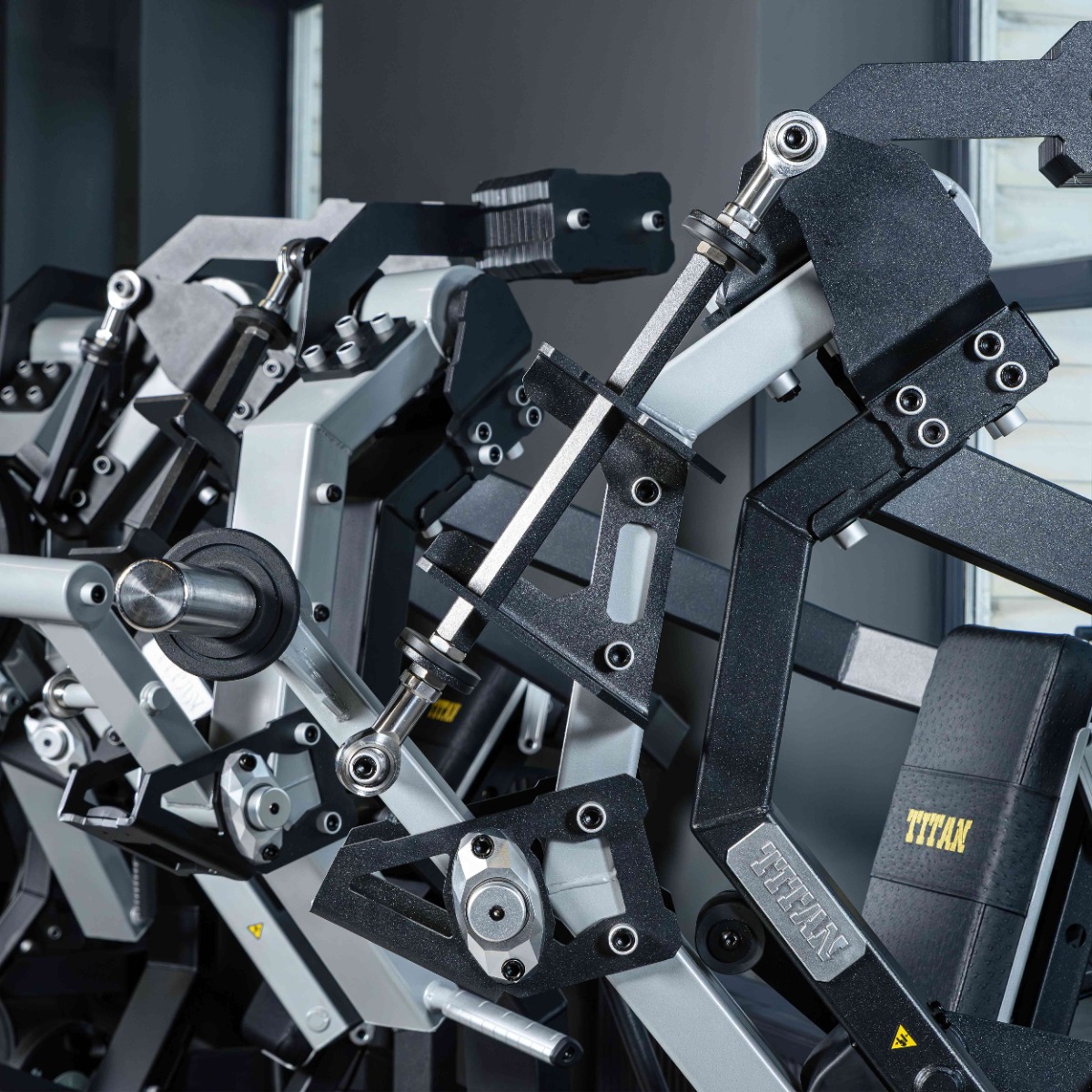 Накопители на подвижных рычагах и статичные для хранения оборудованы кольцами из плотной резины для предотвращения соприкосновения дисков с рамой тренажера и амортизации при размещении свободных весов на накопителях.