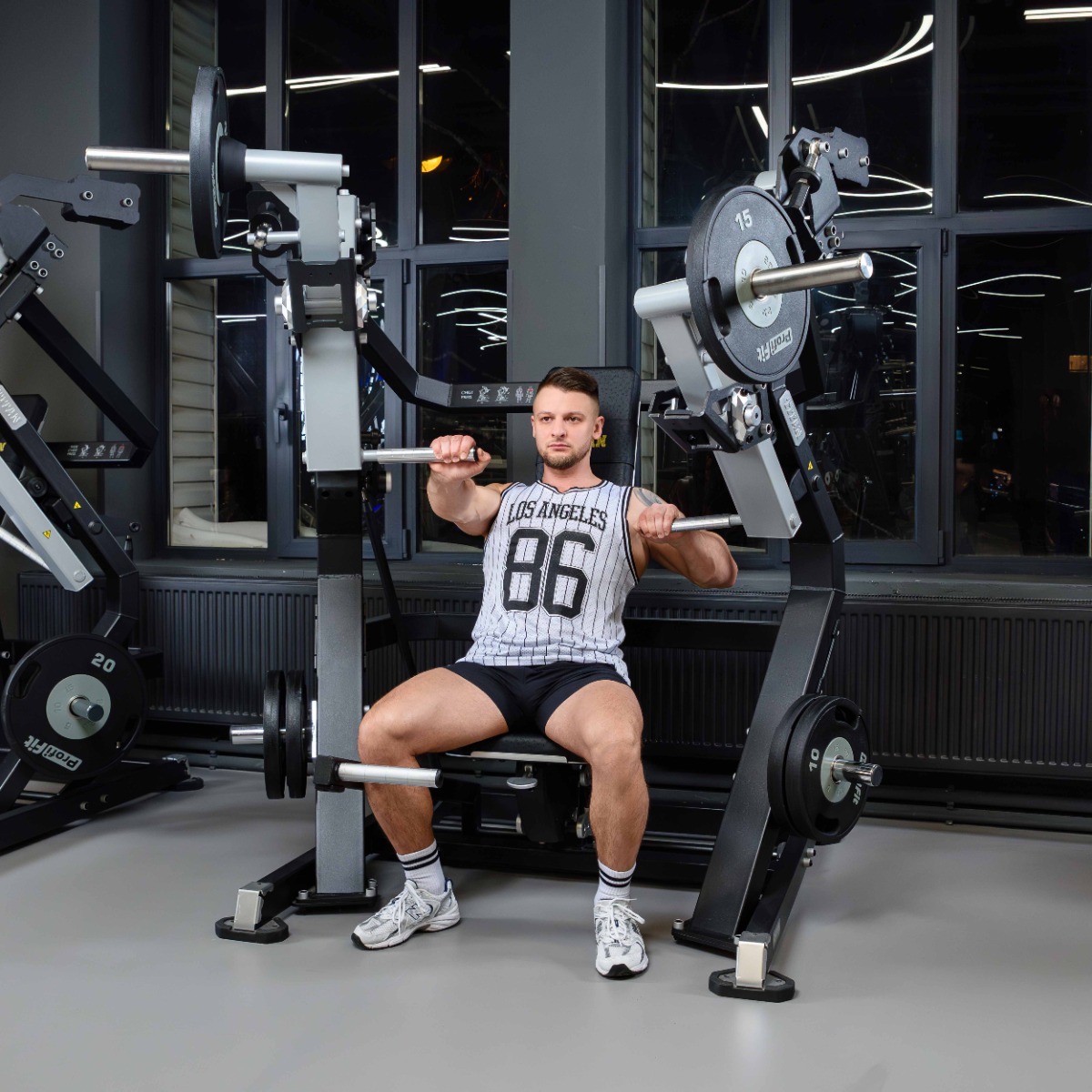 Профессиональный тренажер для коммерческого использования Y905ZAM Жим от груди предназначен для базовых упражнений на большие и малые грудные мышцы, а также дельты.